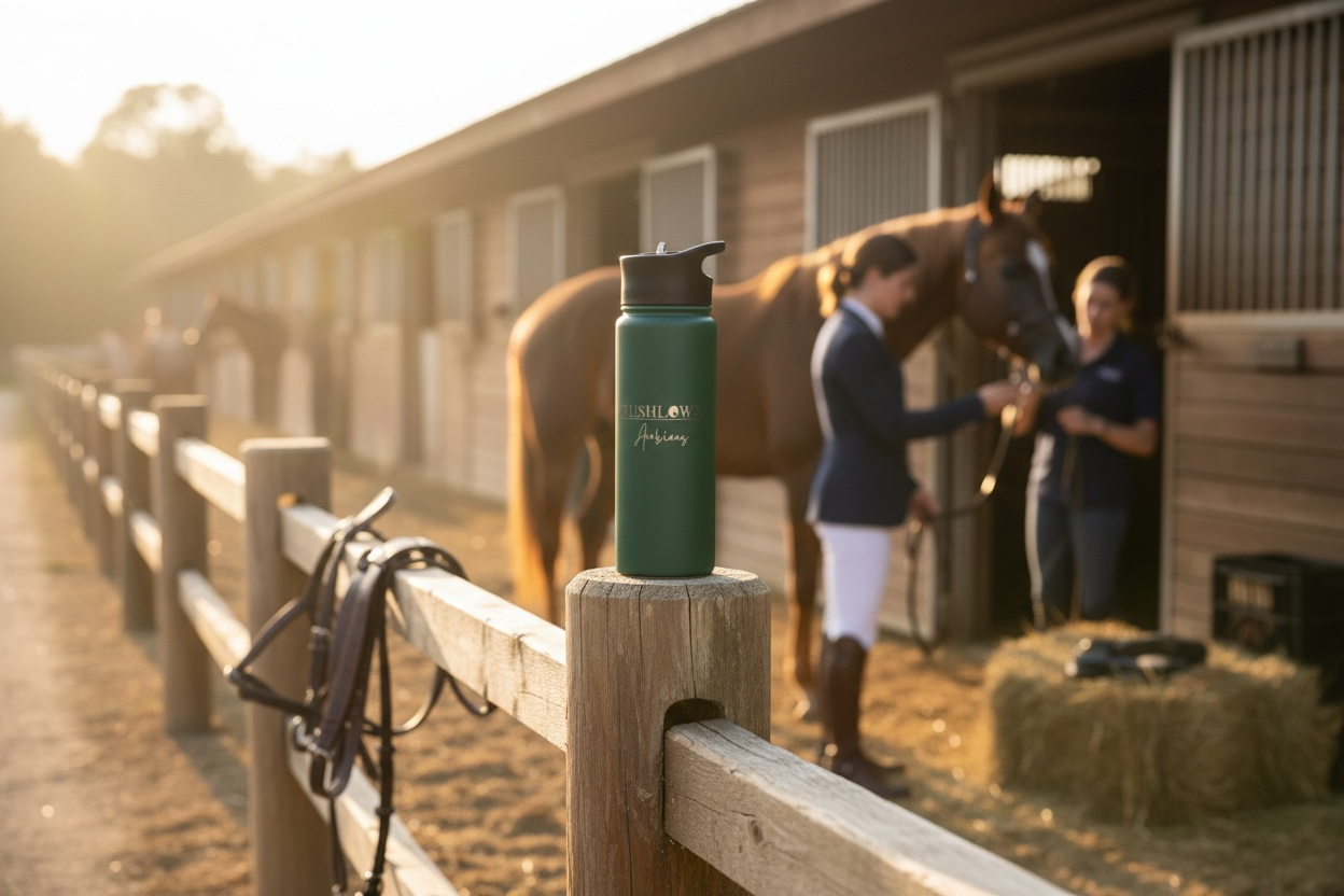 Elevate your style with our custom 24 Oz. Water Bottle. Personalized through laser engraving with your unique design, you'll make a statement at the barn or horse show. This bottle boasts a double-wall exterior and a vacuum seal that maintains hot beverages for up to 12 hours and cold drinks for up to 18 hours. Plus, it's BPA free and leak proof for worry-free hydration. Crafted from premium 18/8 stainless steel and coated with a luxurious powder finish.